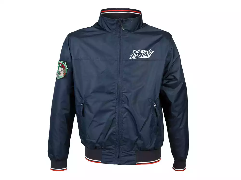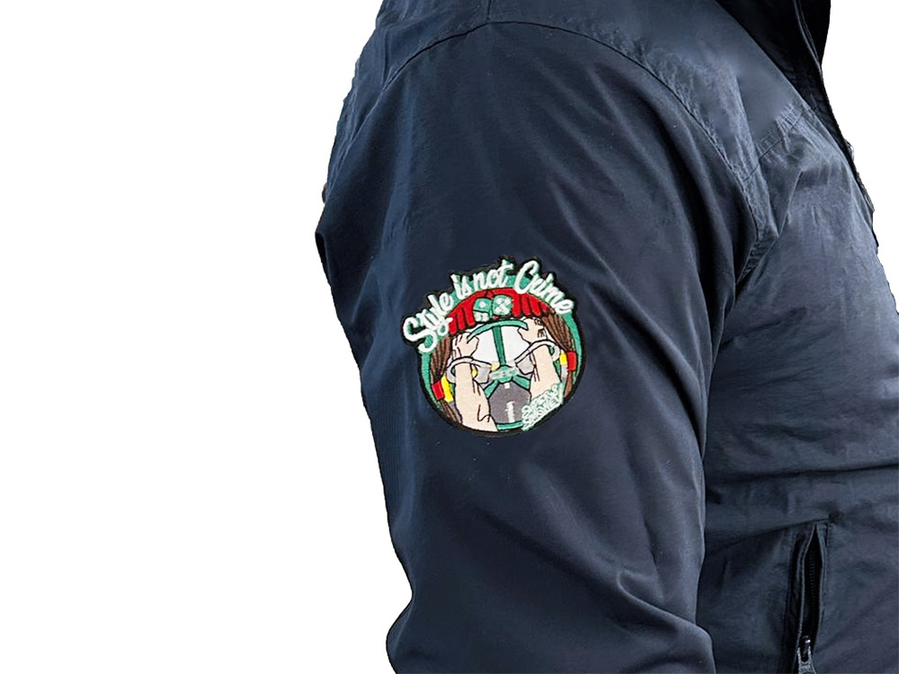 - Design exclusif : logo Super Simone V8 sur la poitrine, inscription « Style is not Crime » dans le dos à hauteur des épaules et écusson « Style is not Crime » sur le bras droit.